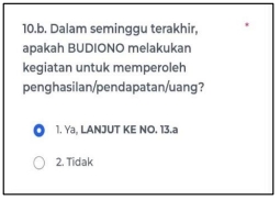 ⏪ Jika pertanyaan nomor 10.a berkode 2 (TIDAK) maka akan ada pertanyaan lanjutan 10.b