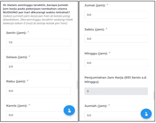 31. Dalam seminggu terakhir, berapa jumlah jam kerja pada pekerjaan tambahan utama (NAMA) per...