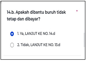 ⏩ Jika responden hanya dibantu oleh pekerja keluarga/tidak dibayar maka isikan kode 2 (Tidak), lalu lanjut ke No.14.d