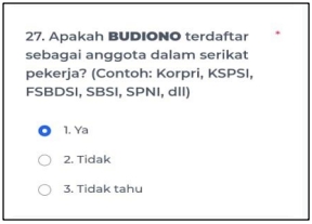 27. Apakah (NAMA) terdaftar sebagai anggota dalam serikat pekerja?