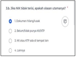 Apabila NIK tidak terisi, tanyakan alasan utamanya kepada responden dan pilih salah satu jawaban yang sesuai.