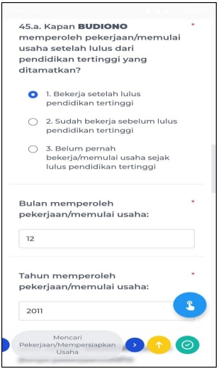 Lakukan probing untuk menggali jawaban responden, terutama jika responden lupa karena pengalaman bekerja setelah lulus sudah lama terjadi.