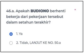 ⏩Bila jawaban berkode 2 (”Tidak”), maka lanjut ke pertanyaan nomor 50.a.