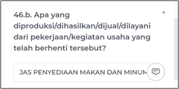 Penjelasan untuk pertanyaan ini sama dengan penjelasan di pertanyaan nomor 13.b, tetapi yang dimaksud di sini adalah apa yang diproduksi/dijual/dilayani pada pekerjaan sebelum pekerjaan/kegiatan saat ini.